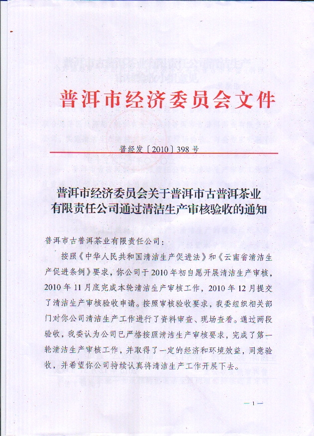 按照《中華人民共和國清潔生產(chǎn)促進(jìn)法》和《云南省清潔生產(chǎn)促進(jìn)條例》要求,我公司于2010年在普洱市木乃河工業(yè)園區首家自愿開(kāi)展了清潔生產(chǎn)審核工作。12月,普洱市經(jīng)委等相關(guān)部門(mén)組織有關(guān)專(zhuān)家進(jìn)行了現場(chǎng)審核驗收并得到通過(guò)。